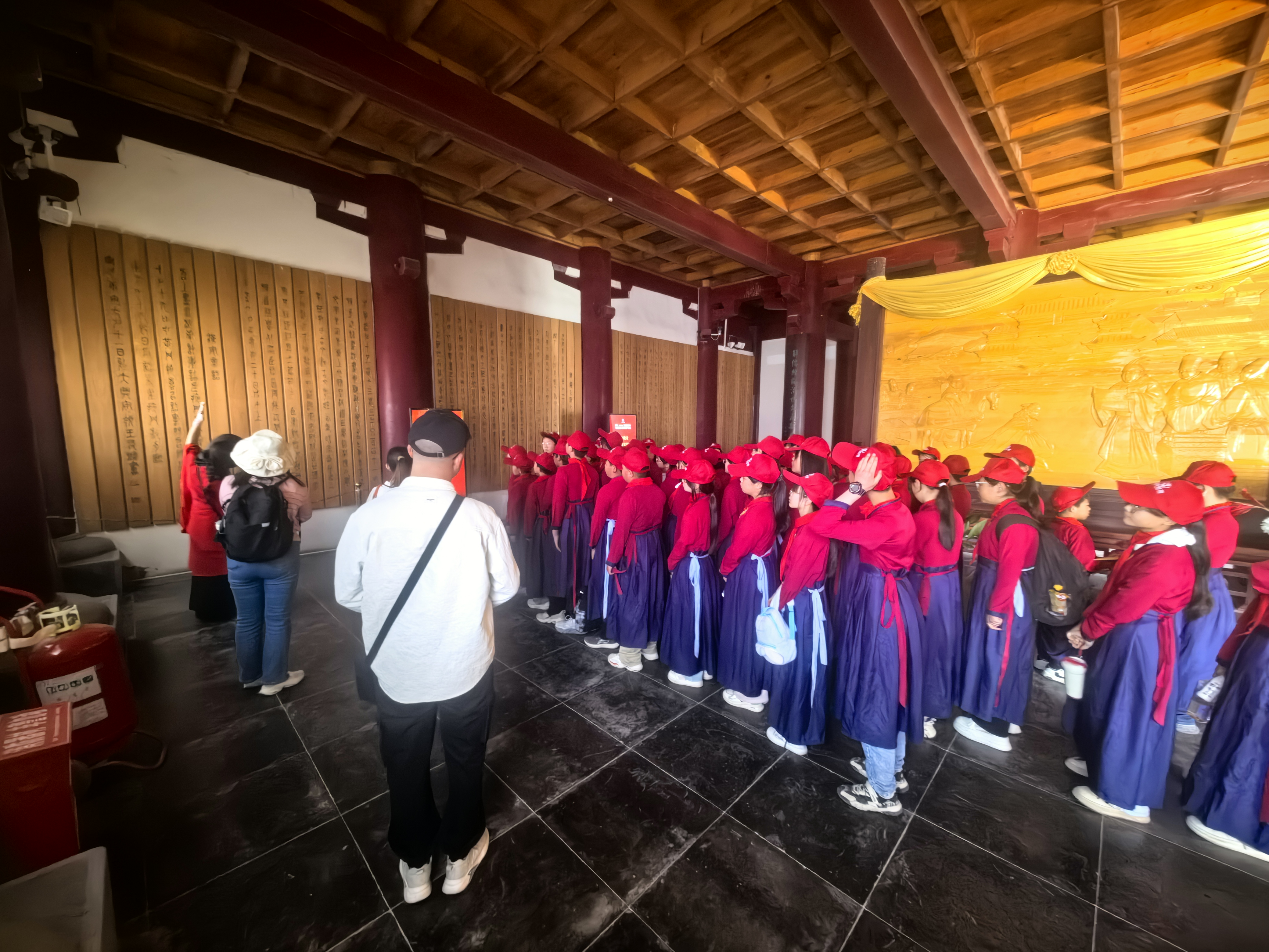 五一期間,許慎文化園,孩子們文明參觀游覽,認(rèn)真傾聽講解。