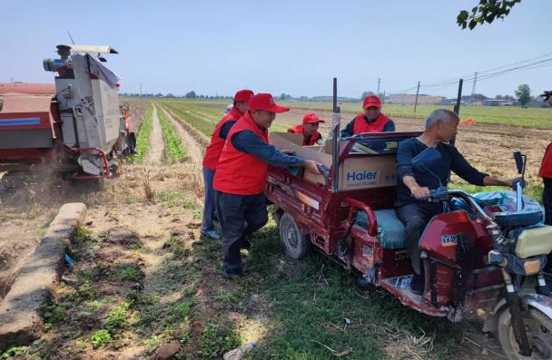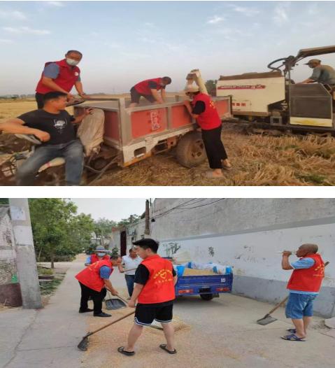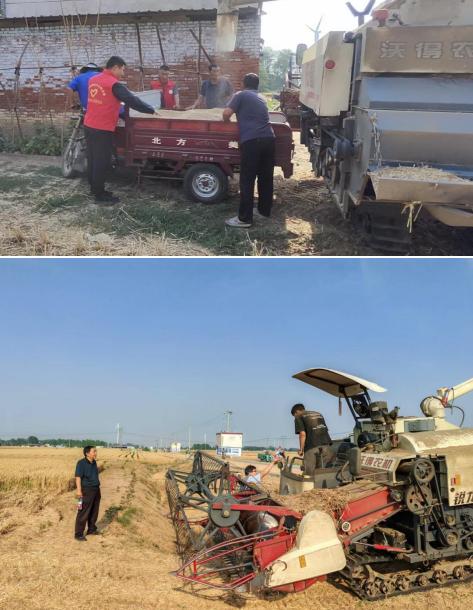 2025年5月21日,支部書記宋俊凱帶領網(wǎng)格長潘超文、網(wǎng)格員宋孟炎、宋書許、宋連三幫助村民潘現(xiàn)吾、宋彥超收割小麥搶收糧食。