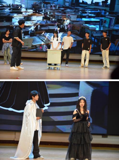 活動現(xiàn)場,演出學(xué)生憑借扎實的臺詞功底、細膩的肢體語言與極具感染力的情緒表達,將角色刻畫得入木三分。幕后團隊同樣“星光閃耀”,從手繪道具、動態(tài)背景投影到音效配合,每個環(huán)節(jié)都彰顯著同學(xué)們的匠心巧思?,F(xiàn)場的評委老師從劇本創(chuàng)意、表演技巧、舞臺效果等多個維度對各劇目進行了綜合評分,。最后夢想合唱團的合唱“世界贈與我”與說文解字社團的“字圣故里美少年 說文解字話傳承”環(huán)節(jié),更是點燃全場熱情將全場氣氛推入高潮,將藝術(shù)欣賞與音樂文學(xué)深度交融。