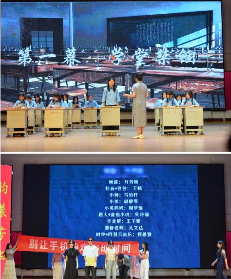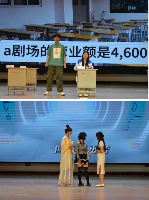 當(dāng)天演出在漯彎春韻的舞蹈中拉開帷幕,從《寶玉大婚》《西安事變》《白雪公主和丫鬟們》《破曉》等經(jīng)典劇目的深度改編,到聚焦校園生活、社會熱點的劇本《再看五分鐘》《當(dāng)考試還剩15分鐘》《誰逼瘋了周日》《回不去的十七歲》等,同學(xué)們以敏銳的觀察力捕捉生活細節(jié),用戲劇語言傳遞青春思考。高一(13)班的《破曉.她時代》通過講述一群率先覺醒的女大學(xué)生,沖破了舊思想的牢籠,以青春和熱血,為自由和平等而吶喊;高一(15)班高一(16)班的《文字彼岸的他們》通過時空交錯的敘事,講述了三代女性的讀書世界,倡導(dǎo)讀書的重要性。高一(9)班的《金陵十三釵》則以極具現(xiàn)代感的舞美設(shè)計和沉浸式表演,賦予傳統(tǒng)故事新的生命力。高一(3)班高一(4)班《回不去的17歲》以兩代人的真實經(jīng)歷改編,引發(fā)學(xué)生對青春,責(zé)任和奉獻的思索,引發(fā)了陣陣掌聲。