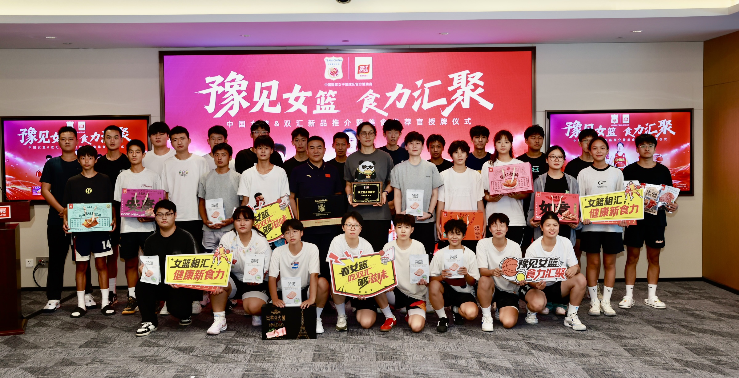 7月28日下午,“豫見女籃 食力匯聚”雙匯新品推介暨美食推薦官授牌儀式在雙匯總部漯河隆重舉行。女籃運動員潘臻琦、球迷代表、雙匯發(fā)展副總裁周霄等出席活動。