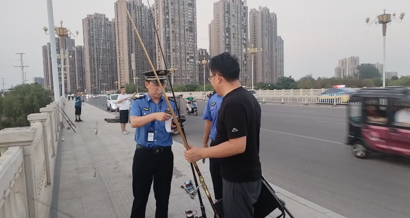“晚上橋面光線不好,來回過往的行人和非機(jī)動(dòng)車輛也多,您在這兒垂釣實(shí)在是不安全啊,趕快收竿回家吧。”8月3日20時(shí)許,在漯河市金山路沙河橋上,經(jīng)開區(qū)城市管理綜合行政執(zhí)法大隊(duì)大隊(duì)長曹陽帶領(lǐng)夜間執(zhí)法人員在轄區(qū)范圍內(nèi)開展橋面垂釣治理行動(dòng)。