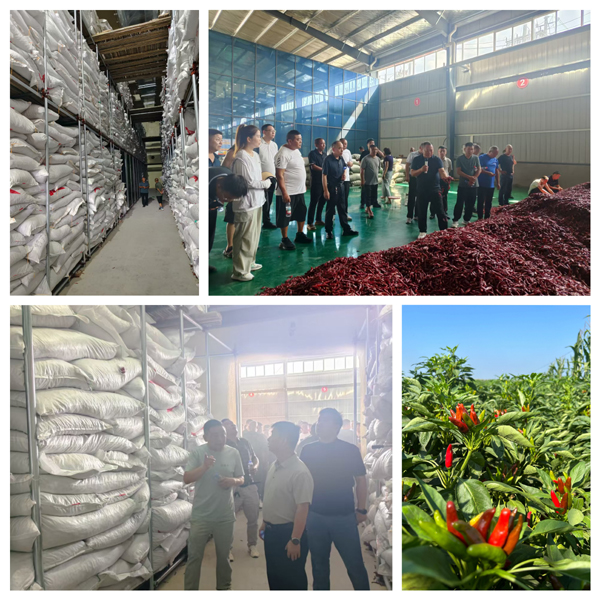 第一站實(shí)地參觀“子彈頭”、“三櫻椒”品種辣椒的生長情況,學(xué)習(xí)“麥椒套種”種植技巧,詢問專家種植模式、病蟲害防治和畝產(chǎn)情況。王崗鎮(zhèn)技術(shù)人員毫無保留地分享了田間管理的關(guān)鍵細(xì)節(jié)與多年積累的實(shí)用經(jīng)驗(yàn),通過細(xì)致觀摩和現(xiàn)場講解,系統(tǒng)了解了這一高效種植模式的核心環(huán)節(jié)——從精準(zhǔn)選種、科學(xué)播種、病蟲防治到高效收獲、專業(yè)存儲及暢通銷售的全鏈條操作流程。第二站實(shí)地參觀了王崗鎮(zhèn)辣椒儲存專用冷庫,通過查看冷庫建設(shè)分區(qū)和分揀情況,詳細(xì)了解辣椒打包存儲技巧和市場托管銷售等關(guān)鍵環(huán)節(jié),為種植大戶安心發(fā)展種植注入“強(qiáng)心劑”。