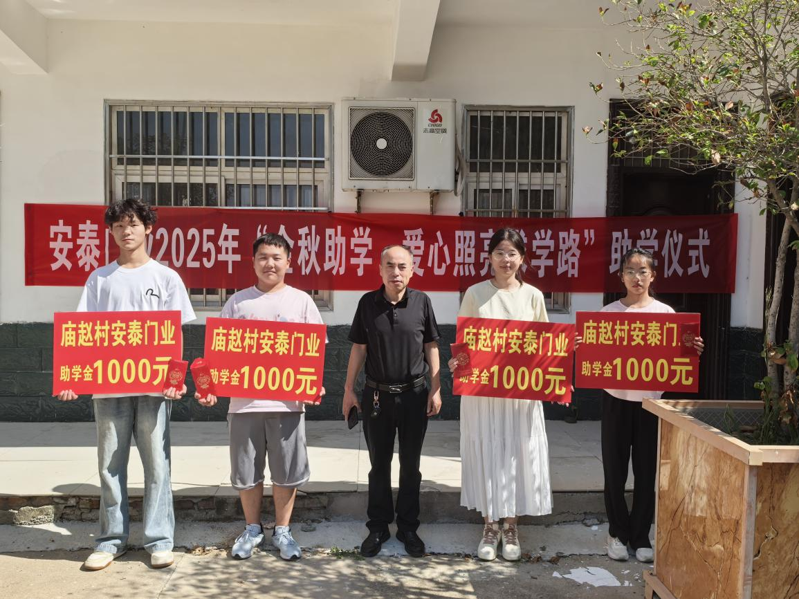 2025年8月22日上午,龍城鎮(zhèn)廟趙村洋溢著溫暖與希望的氛圍,愛心企業(yè)安泰門業(yè)2025年“金秋助學(xué)·愛心照亮求學(xué)路”助學(xué)儀式在這里隆重舉行,為村內(nèi)4名即將踏入大學(xué)校門的優(yōu)秀學(xué)子送去每人1000元助學(xué)金,以實際行動履行企業(yè)社會責(zé)任,鼓勵村里的優(yōu)秀學(xué)子努力奮進(jìn),幫助他們更好地開啟大學(xué)生活。
