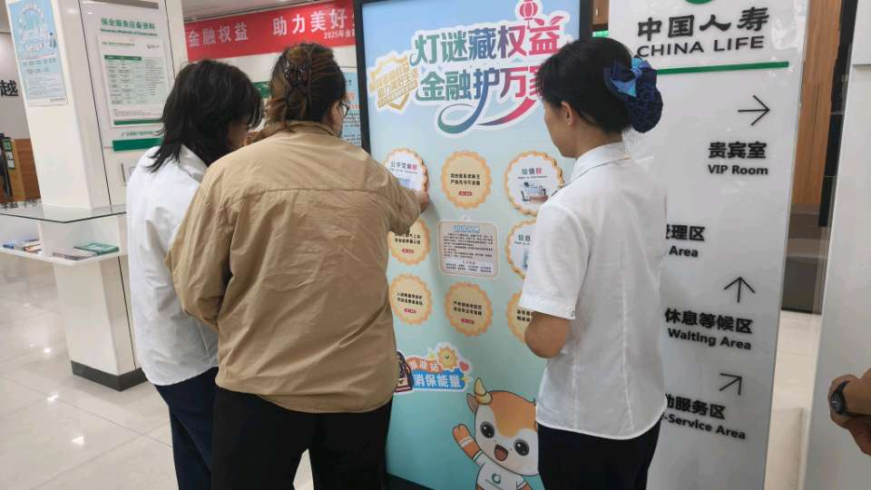 為積極響應(yīng)監(jiān)管部門的號(hào)召,切實(shí)提升社會(huì)公眾金融素養(yǎng),守護(hù)金融消費(fèi)者合法權(quán)益,在2025年9月15日至21日金融教育宣傳周期間,中國(guó)人壽壽險(xiǎn)漯河分公司在黃河路柜面消保教育宣傳基地設(shè)置“消保能量加油站”宣傳專區(qū),開展“燈謎藏權(quán)益,金融護(hù)萬家”活動(dòng)。