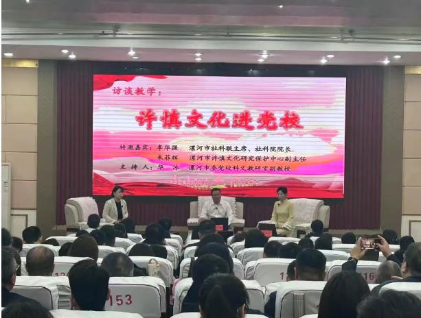 為深入學(xué)習(xí)習(xí)近平文化思想,貫徹落實(shí)中央和省委、市委關(guān)于文化建設(shè)的工作部署,推動(dòng)我市“四大本土文化”創(chuàng)造性轉(zhuǎn)化、創(chuàng)新性發(fā)展,11月6日上午,市社科聯(lián)主席、社科院院長李華強(qiáng),市許慎文化研究保護(hù)中心副主任朱菲輝受邀走進(jìn)黨校秋季學(xué)期第二期主體班課堂,開展了“許慎文化進(jìn)黨校”專題訪談教學(xué),市委黨??萍嘉幕萄惺腋敝魅巍⒏苯淌谌A冰主持。