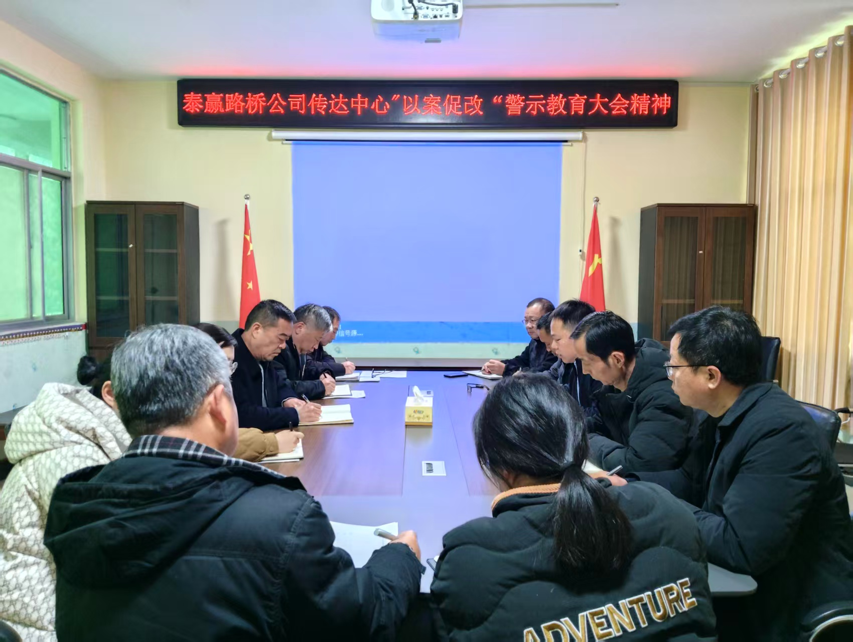 為深入貫徹全面從嚴(yán)治黨要求,強(qiáng)化干部職工紀(jì)律意識(shí)與拒腐防變能力,12月29日,泰贏路橋公司組織領(lǐng)導(dǎo)班子、各部門負(fù)責(zé)人及關(guān)鍵崗位人員召開專題會(huì)議,傳達(dá)學(xué)習(xí)上級(jí)“以案促改”警示教育大會(huì)精神。