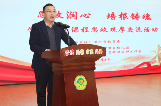 漯河市教育局黨組成員、副局長(zhǎng)聶廣橋在講話(huà)中指出,學(xué)前教育是基礎(chǔ)教育的重要組成部分,是人生成長(zhǎng)的啟蒙時(shí)期。在學(xué)前教育階段適時(shí)、適度、適宜地開(kāi)展思政啟蒙教育,幫助孩子們“扣好人生的第一??圩?rdquo;,意義重大,責(zé)任非凡。組織這次全市范圍的觀摩活動(dòng),是為了樹(shù)立鮮明導(dǎo)向,引導(dǎo)全市學(xué)前教育工作者進(jìn)一步重視思政啟蒙,將其擺在保育教育工作的核心位置。同時(shí)集中展示一批在學(xué)前教育課程思政方面理念新、方法實(shí)、效果好的實(shí)踐案例,讓大家有機(jī)會(huì)相互學(xué)習(xí)、相互啟發(fā)、共同提高。全市各幼兒園要將思政啟蒙教育作為提升保教質(zhì)量的重要抓手,不斷總結(jié)經(jīng)驗(yàn),深化研究,大膽實(shí)踐,涌現(xiàn)出更多優(yōu)秀的成果和范例,為培養(yǎng)擔(dān)當(dāng)民族復(fù)興大任的時(shí)代新人打下堅(jiān)實(shí)的思想基礎(chǔ)。