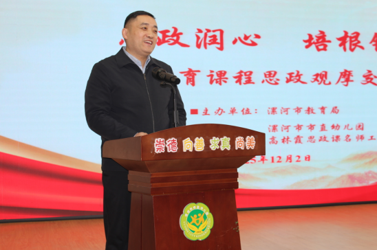 霜染初冬凝暖意,教潤(rùn)童心啟新章。為深入貫徹落實(shí)立德樹(shù)人根本任務(wù),探索符合幼兒年齡特點(diǎn)的課程思政模式與方法,提升幼兒園教師開(kāi)展課程思政的能力與水平,增進(jìn)園所間的交流學(xué)習(xí),12月2日上午,漯河市學(xué)前教育課程思政觀摩交流活動(dòng)在市直幼兒園舉行。漯河市教育局黨組成員、副局長(zhǎng)聶廣橋出席。市教育局秘書(shū)科科長(zhǎng)馮文權(quán),市教育教學(xué)研究室政治教研員、市大中小學(xué)思政課一體化建設(shè)委員會(huì)秘書(shū)長(zhǎng)夏忠新,市屬幼兒園主管園長(zhǎng)、骨干教師;市幼兒園領(lǐng)航工作室共同體單位、市直幼兒園教育集團(tuán)主管領(lǐng)導(dǎo)、骨干教師以及市大中小學(xué)思政課名師工作室主持人參與了本次活動(dòng)。