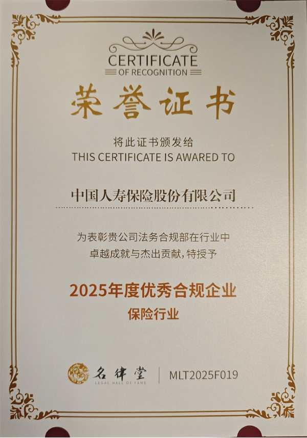 本次評選活動以“完善體系駕馭風(fēng)險 前瞻視野洞見未來”為主題,旨在表彰具有規(guī)范的合規(guī)管理流程與卓越的合規(guī)風(fēng)險管理能力的企業(yè)。這份榮譽的獲得,是對中國人壽近年來高標(biāo)準(zhǔn)合規(guī)治理成效與高水平合規(guī)風(fēng)險防控的生動見證。