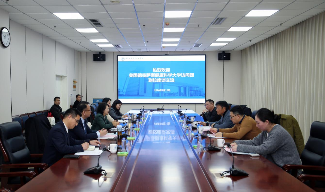 2026 年 1 月 12 日上午,美國(guó)德克薩斯健康科學(xué)大學(xué)副校長(zhǎng)、董事 Wen Huei Chen、中國(guó)代表處代表馬寧一行四人到校交流。漯河市政協(xié)副主席、漯河醫(yī)專校長(zhǎng)張祎捷教授,學(xué)校黨委委員、副校長(zhǎng)鞏少青教授出席會(huì)議,人事處、護(hù)理學(xué)院、對(duì)外交流處相關(guān)負(fù)責(zé)人參加會(huì)議。會(huì)議由鞏少青主持。