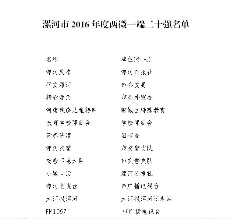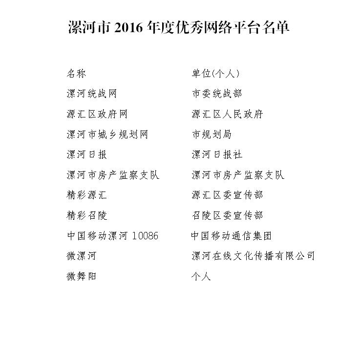 3. 漯河市2016年度優(yōu)秀網(wǎng)絡平臺名單