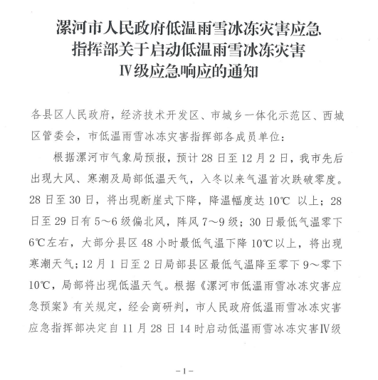 注意防范!漯河啟動(dòng)Ⅳ級(jí)應(yīng)急響應(yīng)
