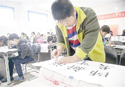 比賽評(píng)委、市書法家協(xié)會(huì)副主席劉穎峰說,通過觀看選手們的作品,發(fā)現(xiàn)其中有些學(xué)生很有天賦。書法進(jìn)入課堂后,對(duì)提高中小學(xué)生的書寫水平,普及傳統(tǒng)文化都有好處。(楊 光)
