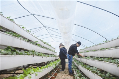 秸稈反應(yīng)堆技術(shù)是源匯區(qū)食品安全監(jiān)督大隊(duì)在精準(zhǔn)扶貧過程中幫助群眾引入的。王新華帶記者進(jìn)入基地的塑料大棚,一入棚,排排立體種植的草莓就呈現(xiàn)眼前。舒展的草莓葉子充滿盈盈綠意,其間怒放著朵朵小白花。與一般的塑料大棚不同的是,草莓上面的棚架上固定有兩條塑料薄膜制成的“長龍”,里面充滿氣體。“長龍”貫穿大棚兩端,“龍身”上扎有一個(gè)一個(gè)的孔。王新華對(duì)記者說:“這兩條‘長龍’是送氣筒,里面是落葉經(jīng)秸稈反應(yīng)堆技術(shù)處理后產(chǎn)生的二氧化碳?xì)怏w。”二氧化碳的氣源,是大棚一端的秸稈反應(yīng)堆。正在忙著為秸稈反應(yīng)堆打孔的陳小甫是大劉鎮(zhèn)前陳村村民,經(jīng)過一段時(shí)間的操作,他儼然成了秸稈反應(yīng)堆技術(shù)方面的行家里手。“這一種是‘內(nèi)置秸稈生物反應(yīng)堆’,其實(shí)就是把我們以前焚燒掉的玉米秸稈、樹葉等通過發(fā)酵,使它們轉(zhuǎn)化成蔬菜、瓜果所需要的二氧化碳。發(fā)酵過程中,還能為冬季蔬菜生長提供大量的熱量,促進(jìn)蔬菜生長。使用秸稈生物反應(yīng)堆技術(shù)后,可以不施化肥、不打農(nóng)藥,生產(chǎn)出來的瓜果蔬菜是典型的有機(jī)綠色食品。”