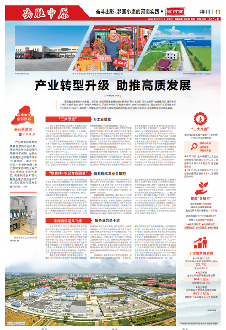 篤定前行,經(jīng)濟(jì)高質(zhì)量發(fā)展的路子越走越寬。經(jīng)濟(jì)發(fā)展穩(wěn)中有進(jìn),主要指標(biāo)增速均居全省第一方陣或第二方陣前列。產(chǎn)業(yè)結(jié)構(gòu)持續(xù)優(yōu)化,“三鏈同構(gòu)”助推綠色食品產(chǎn)業(yè)生態(tài)日益完善,雙匯發(fā)展、美國(guó)嘉吉、中糧集團(tuán)、臺(tái)灣旺旺、平平食品等為代表的千億級(jí)食品產(chǎn)業(yè)集群大放異彩,首家中國(guó)食品名城的品牌越擦越亮;裝備制造、生物醫(yī)藥、電子信息產(chǎn)業(yè)不斷壯大,鹽化工、造紙等傳統(tǒng)產(chǎn)業(yè)加快轉(zhuǎn)型,冷鏈物流穩(wěn)居全國(guó)前列,漯河成功創(chuàng)建全省唯一的“中國(guó)快遞示范城市”。新舊動(dòng)能加快轉(zhuǎn)換,重點(diǎn)領(lǐng)域改革取得重大進(jìn)展和顯著成效,“證照分離”改革走在全省前列,全省首張“零見(jiàn)面”個(gè)體工商戶營(yíng)業(yè)執(zhí)照在漯河頒出,市場(chǎng)主體“集群注冊(cè)”登記全省首創(chuàng),企業(yè)和群眾網(wǎng)上辦事更加便捷;食品產(chǎn)業(yè)鏈招商圖譜在全省推廣,肉類進(jìn)口口岸業(yè)務(wù)量在全國(guó)內(nèi)陸指定口岸中遙遙領(lǐng)先,漯河海關(guān)開(kāi)關(guān)運(yùn)營(yíng),綜合保稅物流中心(B型)獲批籌建,漯河港建成通航、通江達(dá)海,中國(guó)(漯河)食品博覽會(huì)從地方走向世界。
