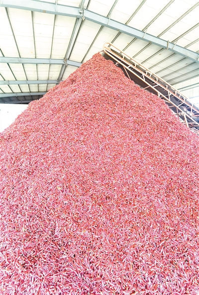 經(jīng)過大型設備分揀后的辣椒堆成了小山。