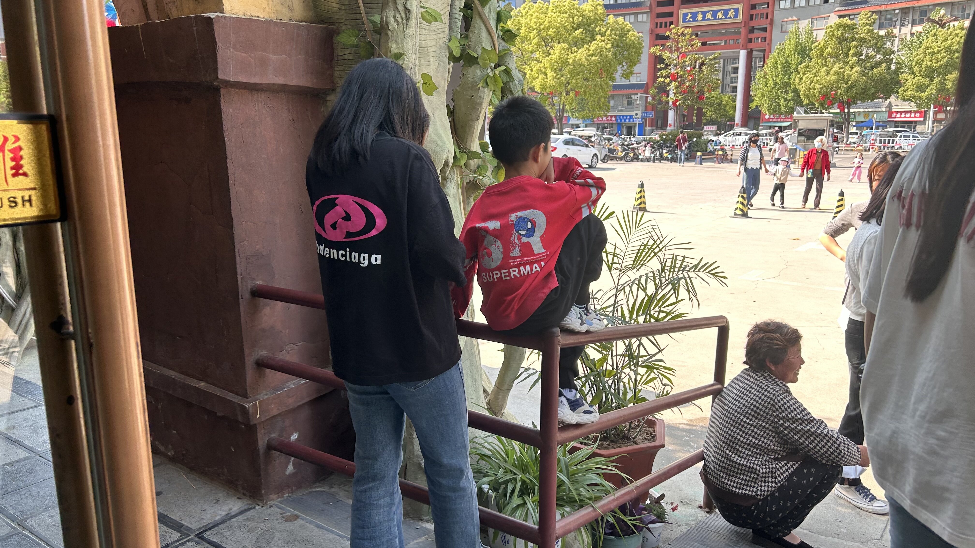 五一期間,在神州鳥園,這位小孩子坐欄桿上休息不文明。