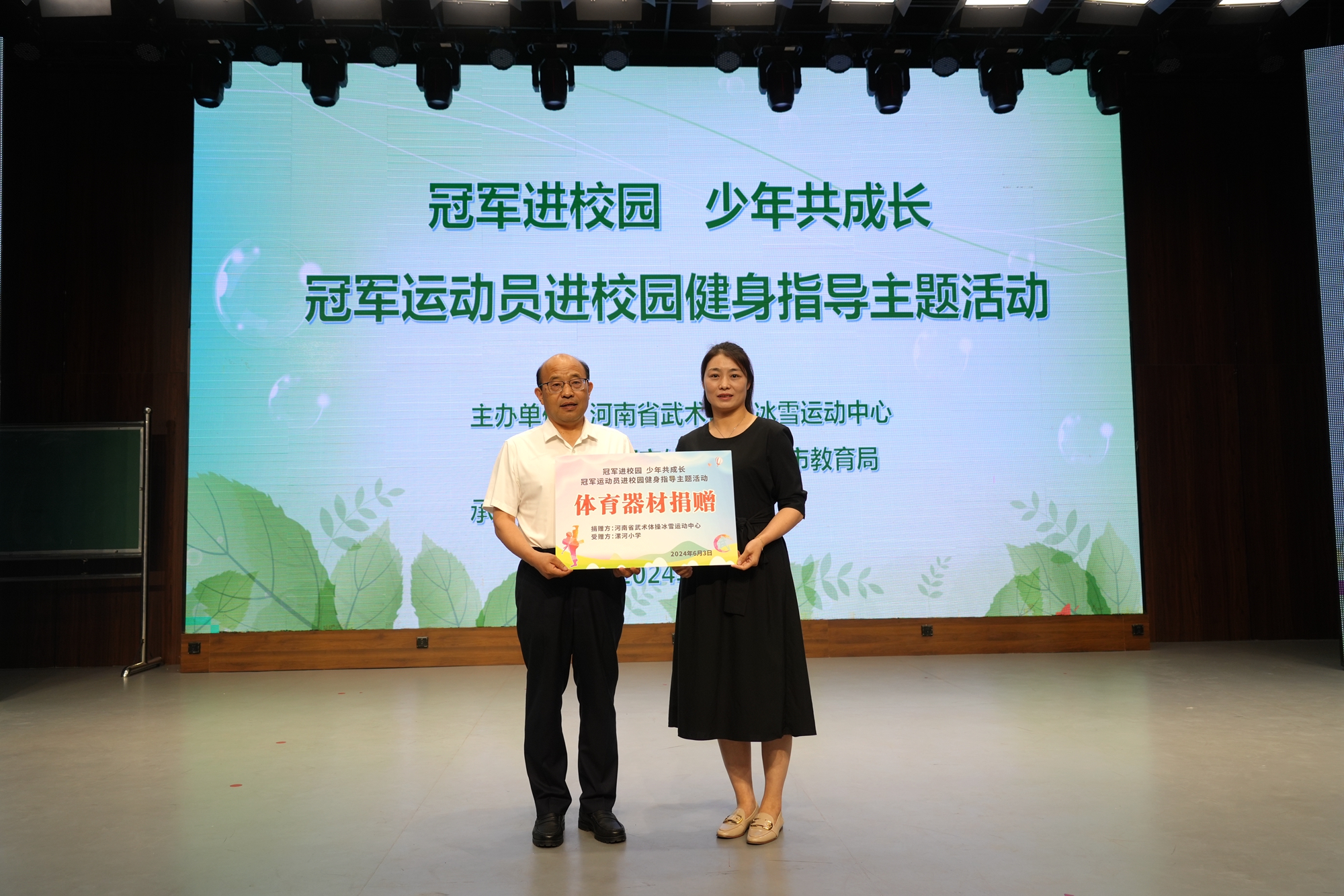 活動現(xiàn)場,河南省武術(shù)體操冰雪運動中心及漯河市體育局向?qū)W校贈送了籃球,以此表達對學(xué)校體育工作的支持和關(guān)心。隨后,孔洪星、申國順兩位冠軍在熱烈的掌聲和歡呼聲中走上舞臺,他們深情回顧了自己在武術(shù)散打道路上的奮斗歷程,分享了那些充滿挑戰(zhàn)和汗水的故事。這些真實而感人的經(jīng)歷深深觸動了在場的每一位師生,讓大家更加深刻地理解了冠軍榮耀背后的艱辛付出和頑強拼搏的精神。