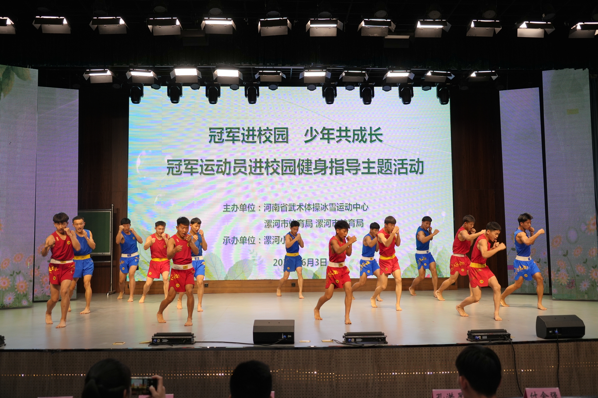 6月3日下午,漯河市培養(yǎng)輸送的世界武術(shù)散打冠軍孔洪星、申國順走進漯河小學(xué),與該校師生進行了一場富有意義的互動活動。河南省武術(shù)體操冰雪運動中心副主任劉同濤,省武術(shù)體操冰雪運動中心紀檢專干李俊麗,漯河市文化廣電和旅游局(體育局)副局長付會強,漯河市教育局副局長郭俊偉,漯河市體育中心主任馬大草,漯河市教育局體衛(wèi)藝站站長陳國印,漯河小學(xué)黨總支書記丁俊生,漯河小學(xué)校長李蘊華出席本次活動。