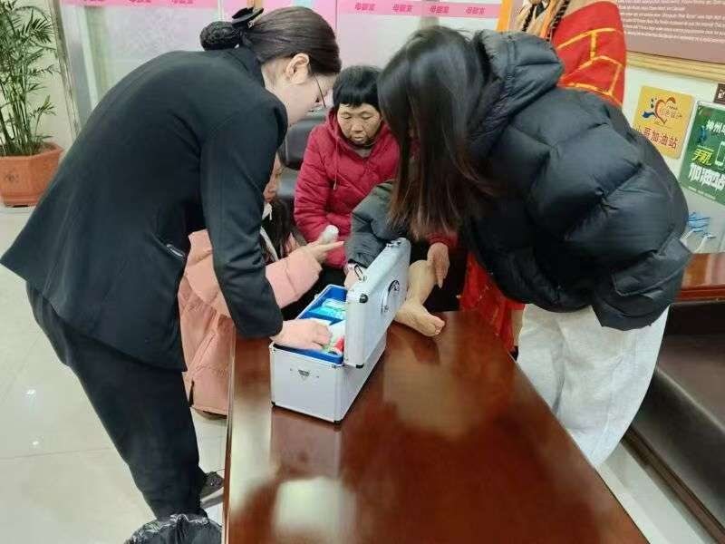 春節(jié)期間,神州鳥園工作人員為游客提供簡單醫(yī)療服務(wù)的場面很溫馨。