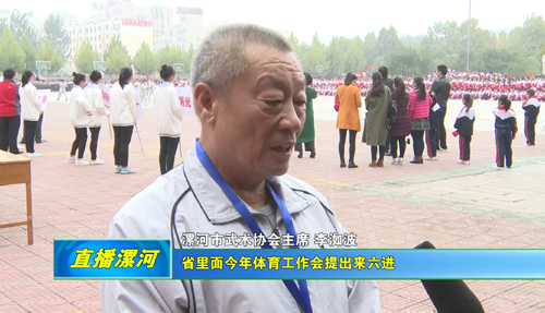 漯河市武術(shù)協(xié)會(huì)主席李洳波:國家對(duì)武術(shù)、包括體育這方面都非常重視,省里面今年提出來六進(jìn),武術(shù)進(jìn)校園放的比較靠前,所以咱漯河既然是國家級(jí)非物質(zhì)文化遺產(chǎn)項(xiàng),所以說武術(shù)進(jìn)校園是咱必須要做到的一個(gè),因?yàn)樗坏囵B(yǎng)下一代,而且要把漯河的延續(xù)了幾百年的武術(shù)文化,咱要給它發(fā)揚(yáng)光大。
