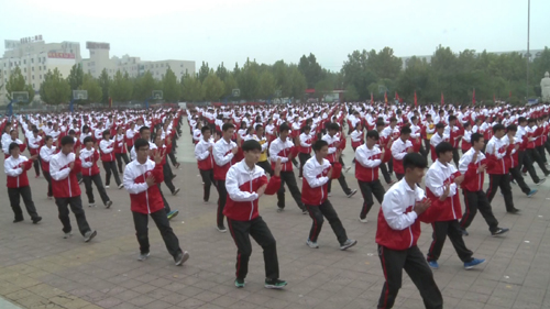 當(dāng)天上午9時(shí)許,展演開始,漯河四高的2000名學(xué)子身穿校服,伴隨著激昂的音樂,開始練習(xí)心意六合拳。他們動(dòng)作整齊、出拳穩(wěn)重,腳步落地鏗鏘有力,場(chǎng)面令人震撼。他們用最嚴(yán)謹(jǐn)和精湛的武術(shù)技藝,演繹博大精深的中華武術(shù)文化,展示傳統(tǒng)武術(shù)的力量和魅力,為廣大武術(shù)愛好者奉上一場(chǎng)宏達(dá)的饕餮盛宴。