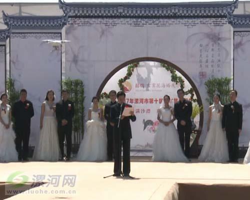 五一假日期間,漯河市第十屆青年集體婚禮在市區(qū)沙澧河畔舉行。12對新人在親朋好友和市民們的見證下,一同許下愛的誓言,踏上幸??鞓返男律睢?/p>