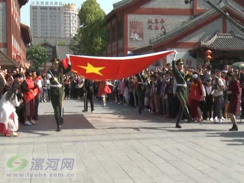 今年的青年集體婚禮,漯河市首次將“愛國文化元素”融入其中,特別邀請了天安門原國旗護衛(wèi)隊、中國第一國旗手高紅浦及戰(zhàn)友現(xiàn)場舉行升旗儀式。上午9點,莊嚴(yán)肅穆的升國旗儀式開始,12對新人和現(xiàn)場的親朋好友在飄揚的國旗下共唱國歌。升旗儀式結(jié)束后,高紅浦和戰(zhàn)友還給每對新人送上了一面鮮艷的五星紅旗作為新婚禮物。
