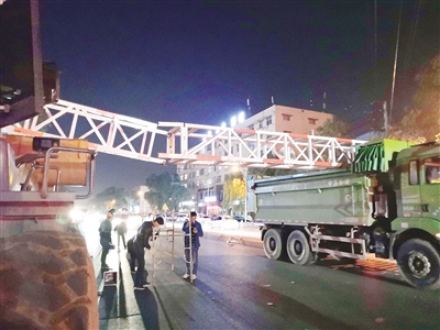 不一會(huì)兒,救援人員趕到現(xiàn)場(chǎng),在限高桿附近擺放警示標(biāo)志,提醒過(guò)往車(chē)輛和行人小心。隨后,救援人員找來(lái)一輛挖掘機(jī),把鏟斗升起,托著搖搖欲墜的限高桿,防止其墜落。然后,救援人員對(duì)限高桿進(jìn)行修復(fù)。