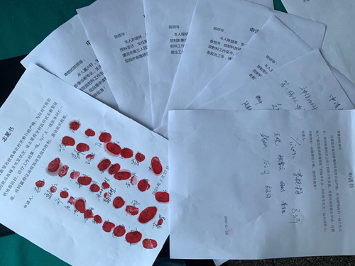 疫情就是召喚,面對當(dāng)前“疫情”的嚴(yán)峻形勢,在院黨委的倡議下,300多名醫(yī)務(wù)人員紛紛請戰(zhàn)一線,一張張請?jiān)笗粋€(gè)個(gè)鮮紅的指印,堅(jiān)定著抗疫勝利的決心和信心。發(fā)熱門診成立以來,先后有30多名醫(yī)務(wù)人員承擔(dān)工作,他們中有科室專家、黨員干部、積極分子、青年醫(yī)護(hù),為方便群眾就診,加快篩查工作,一直堅(jiān)持24小時(shí)值班制,發(fā)熱門診的醫(yī)務(wù)人員已經(jīng)和疫情連續(xù)戰(zhàn)斗了四十幾個(gè)晝夜,他們堅(jiān)守崗位,努力做好分診、就診和消毒隔離工作,沒有一人叫苦喊累。面對疫情他們迎難而上,絕不后退。