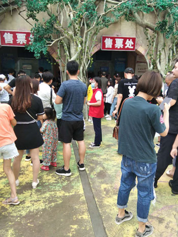 十月一日,市神州鳥園志愿者引導(dǎo)游客排隊(duì)購(gòu)票,做文明旅游的踐行者和傳播者。