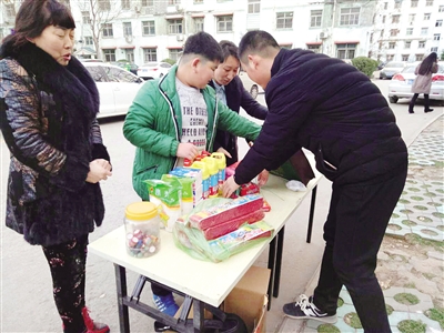 1月20日下午3點多,記者來到小區(qū)里,居民們步履匆匆,拎著大包小包往家趕著過節(jié),建設(shè)路社居委擺的“煙花爆竹禮品兌換處”,吸引了不少居民們注意。