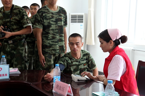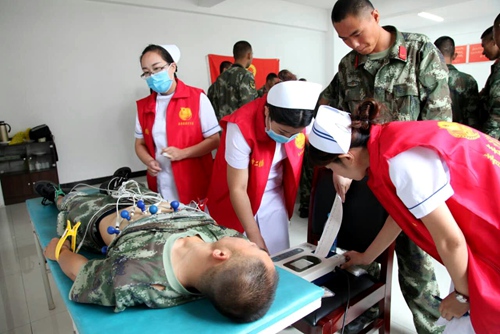 由于官兵們常年埋身在高強度的執(zhí)勤、訓練工作中,許多官兵都患上“上下肢肌肉拉傷”、“關節(jié)受傷”等疾病。為了有效地幫助官兵們解決切身醫(yī)療需求,此次義診活動專門制定了詳實的義診方案,除了提供心電圖檢查、測血壓、健康咨詢等內(nèi)容外,還現(xiàn)場為他們針灸、推拿,對病情較輕的官兵針對檢查結果給予健康指導及合理用藥。