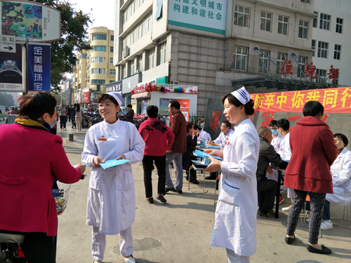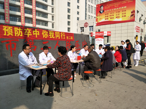 在第12個(gè)卒中日來臨之際,市二院組織神經(jīng)內(nèi)科呂杰民、張芳、張亞莉、孫艷霞等專家團(tuán)隊(duì)在醫(yī)院大門口舉辦大型義診宣傳活動(dòng)。
