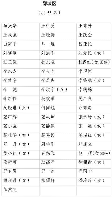 漯河市第八屆人民代表大會代表名單