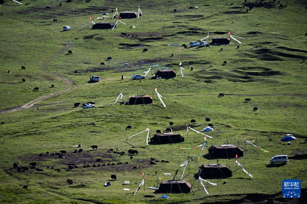 這是7月31日在青海省果洛藏族自治州達(dá)日縣吉邁鎮(zhèn)普忙村拍攝的牧民的夏季草場。