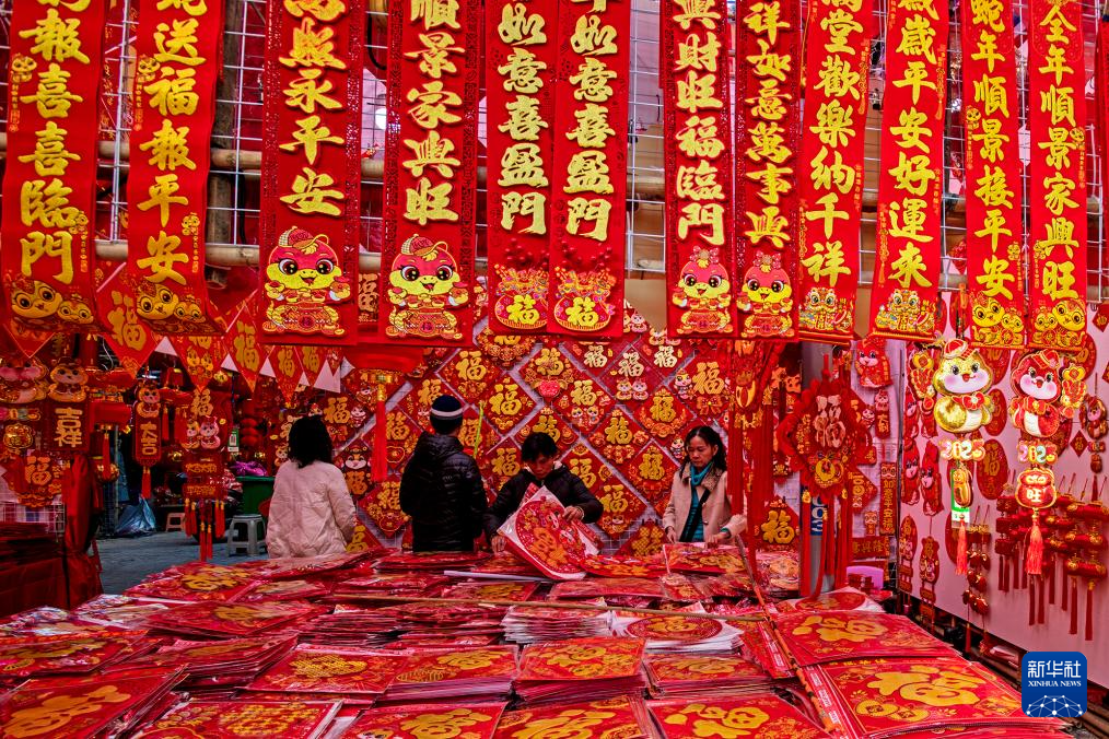 春節(jié)臨近,大街小巷張燈結(jié)彩,人們逛集市、購(gòu)年貨,參加各種迎新年活動(dòng)。