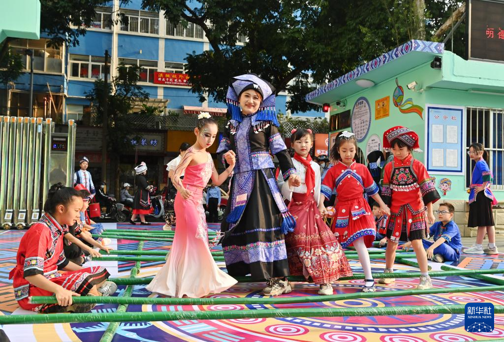 當日,廣西南寧市民族大道東段小學舉行2025年“鑄牢中華民族共同體意識”主題活動暨“廣西三月三”民族藝術(shù)節(jié),孩子們以多種方式喜迎佳節(jié)。