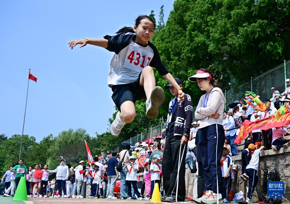 5月30日,青島市實驗小學(xué)學(xué)生參加跳遠比賽。