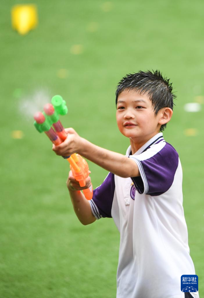5月30日,重慶兩江新區(qū)巴蜀學(xué)校學(xué)生在“水趣童樂”活動中玩水槍。