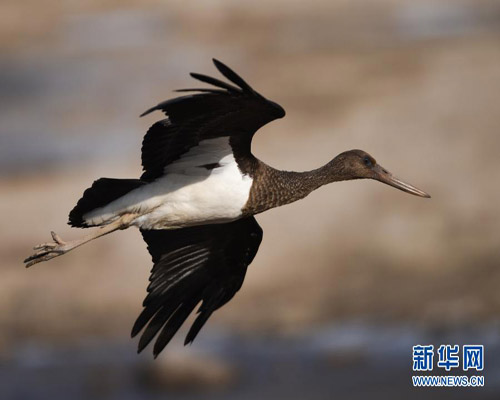 高速攝影抓拍黑鸛懸停覓食瞬間