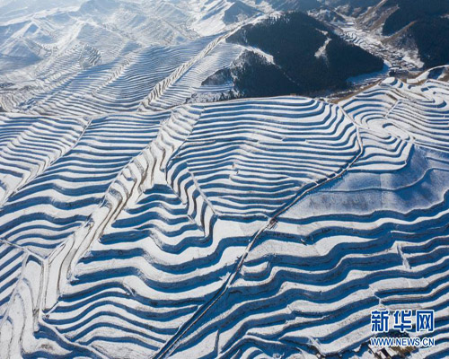 鏡頭聚焦甘肅天祝雪落梯田景色美