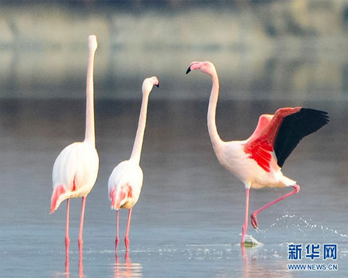 火烈鳥亮相運城鹽湖
