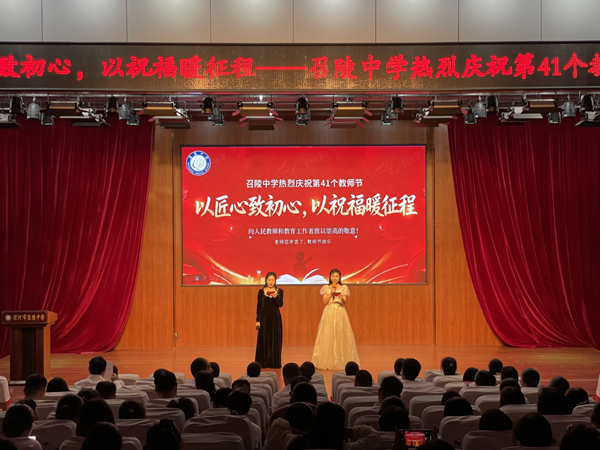 丹桂飄香滿(mǎn)校園,師恩如歌潤(rùn)心田。2025年9月10日下午,召陵中學(xué)慶祝第41個(gè)教師節(jié)表彰大會(huì)在報(bào)告廳隆重舉行。全體師生齊聚一堂,以最真摯的敬意與熱烈的掌聲,致敬耕耘在教育一線(xiàn)的園丁,共同唱響“以教育家精神鑄魂強(qiáng)師,譜寫(xiě)教育強(qiáng)國(guó)建設(shè)華章”的時(shí)代主旋律。